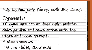 Click here for a printable version of Pilar's recipe for Turkey with Mole Sauce