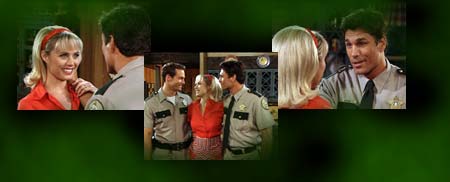 In the vision which both Ivy and Sam have, they are a happily married couple. Sam is a respected member of the Harmony Police Department, and Ivy is a devoted wife and mother! This fantasy certainly shows a whole new side of Ivy-her mink coats and designer gowns have been replaced by aprons and dresses made out of old curtains! But Ivy is perfectly content in her role as Sam's wife. In fact, she has quite a knack for cutting coupons, baking casseroles, and making flyers for the policeman's ball!